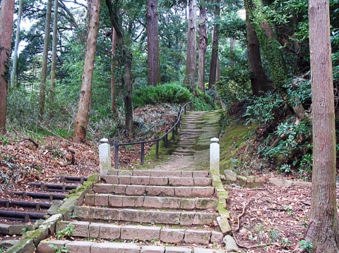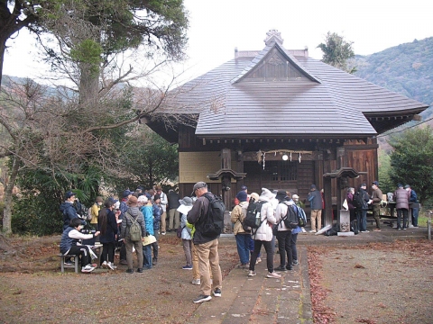 ▼日向神社(白髯神社)境内で集合です。後背中腹の日向薬師を目指します。