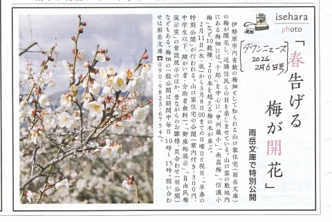 ★梅畑の一般公開(上記期間中の毎日公開:自由散策、10時~15時)