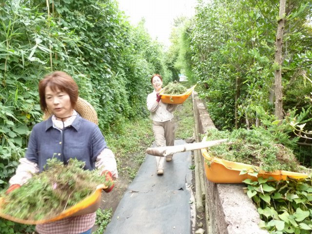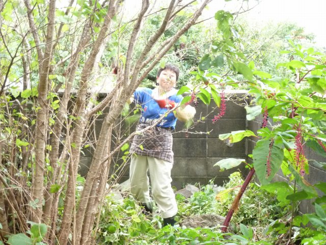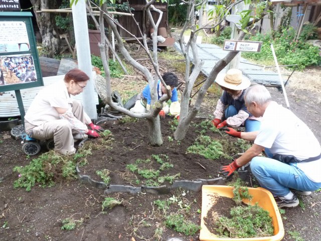 前庭の草取り