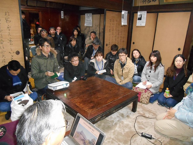 アジア民衆史研究会の26名(韓国の方が主)が自由民権運動についての研修に山口家を訪れました。自由民権運動と山口家についての野崎先生の説明があり、建物を見学されました。