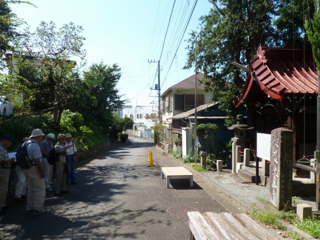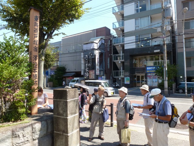 文化財ウォーク:地代官作助出府の道(大山道)の4回目”戸塚宿と大山道(戸田道)の追分を行く”が9月28日に行われます。昨日はスタッフ11名が下見に歩きました。再開発で綺麗になった戸塚駅から柏尾川沿いを歩き上方見付、澤辺本陣跡、江戸方見付を通り大山道の一つ;戸田道の入口、王子神社までの5.2Kmを歩き、説明箇所の確認をしました。