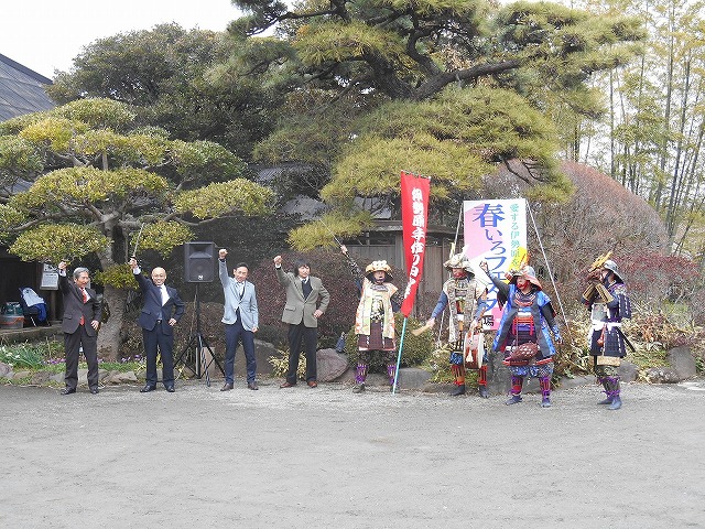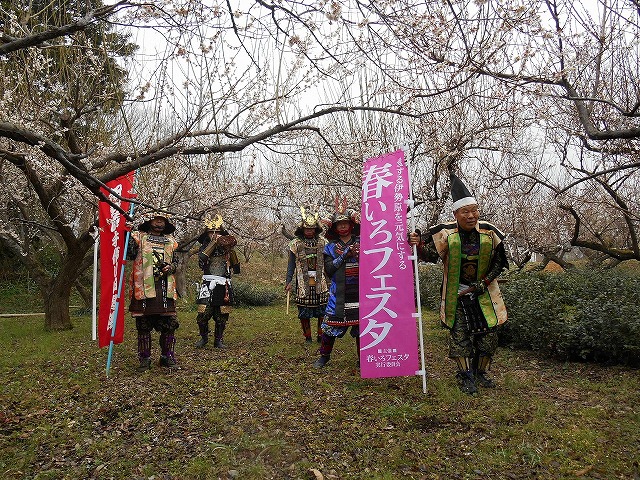 今日から16日までの土曜・日曜日に春色フェスタが開かれ、午後から市長さん他や甲冑隊のみなさんが参加してオープニングセレモニーがありした。大山キノコカレー、スワンベーカリーのパン、陽だまりの会、ジャスミングループ、キスゲハイキンググループなどの出店がありました。梅林も今が見ごろです。