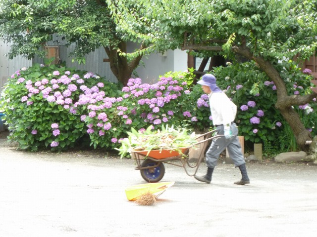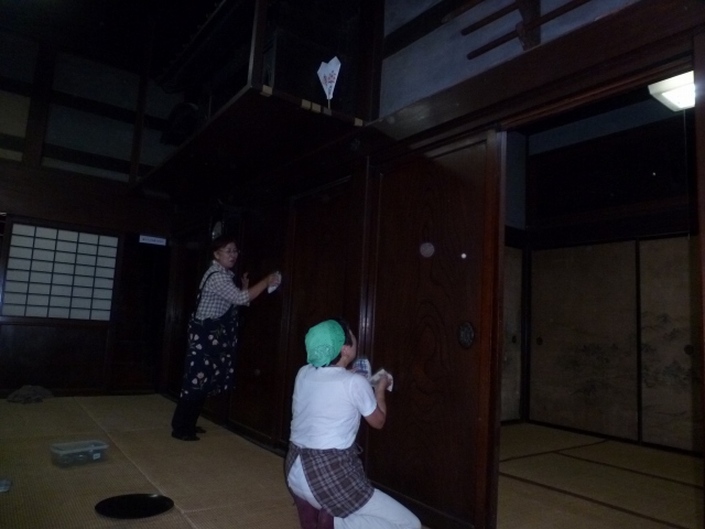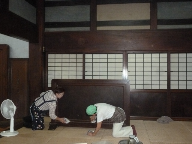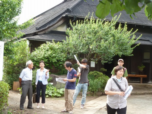 6月17日に、BS朝日「百年名家」の撮影が雨岳文庫でありました。このために急遽、糠袋で大黒柱などを磨き、窓拭き、周りの草取り、などをしました。当日は午前中から大山に行き、雨岳文庫では16時から19時くらいまで撮影が行われ、旅人八島智人、牧瀬里穂さんに東海大の小沢先生が案内されました。