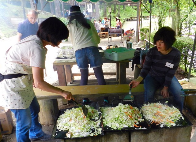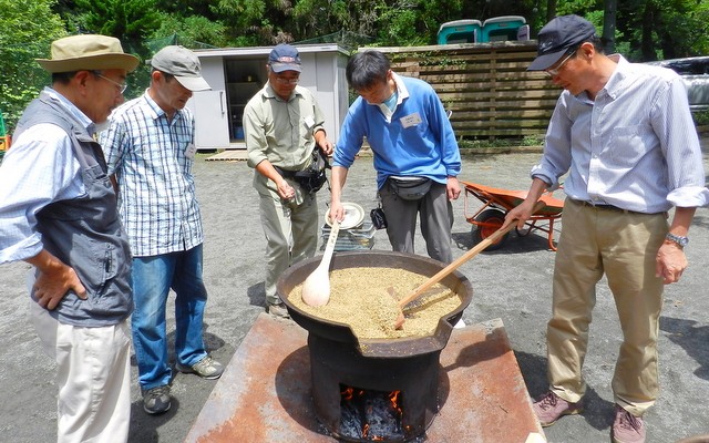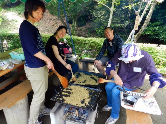 12:30 火おこし、焼きそば・麦茶焙煎開始