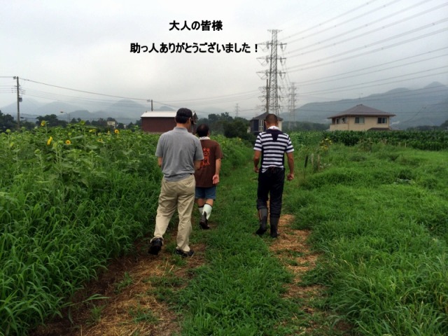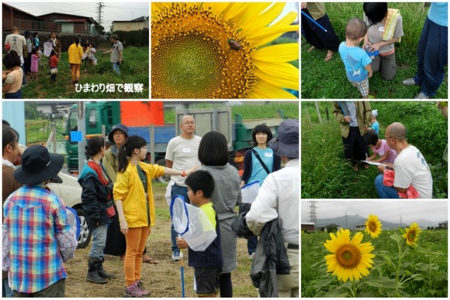 腹ごしらえの後で、ヒマワリ畑に移動。虫さんたちを「さがして」「さわって」「よくみて」みました。