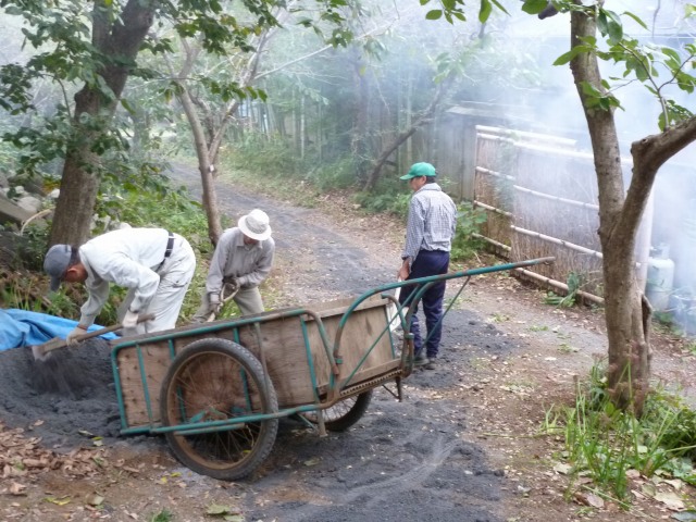 10月21日の「お茶の作法体験」に向けて、離れまでの通路の整備などを行いました。