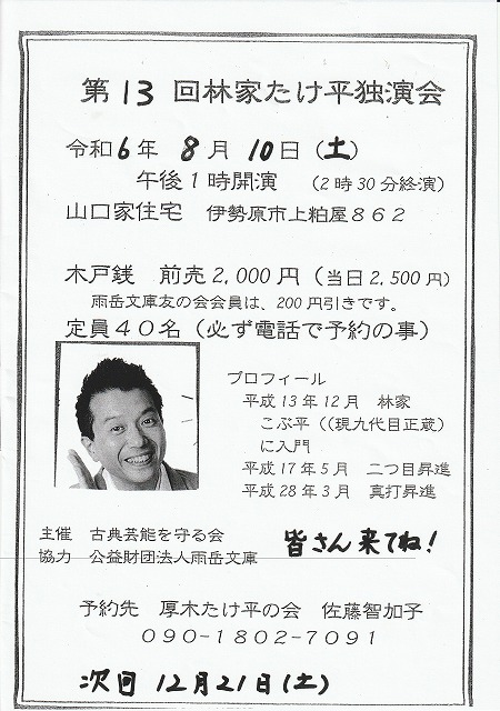 *次回の独演会は8月10日(土)です。古民家での怪談噺でしょうか!?