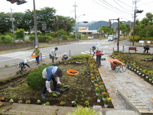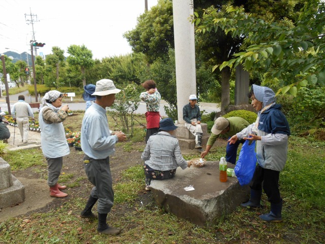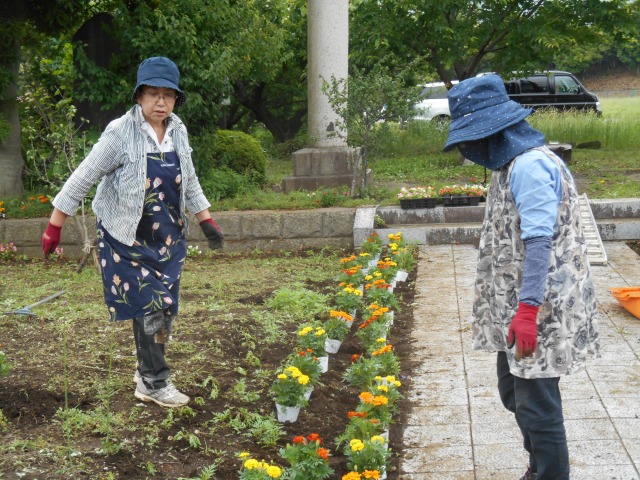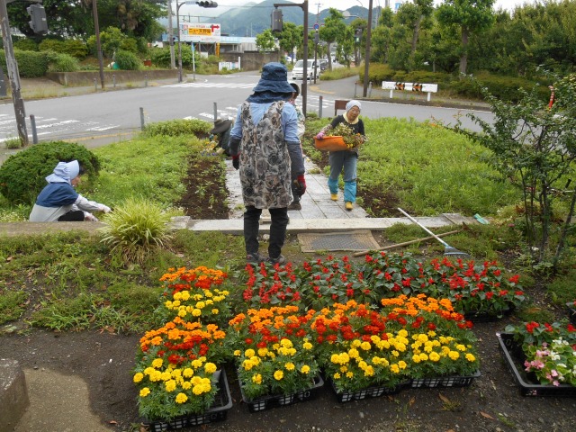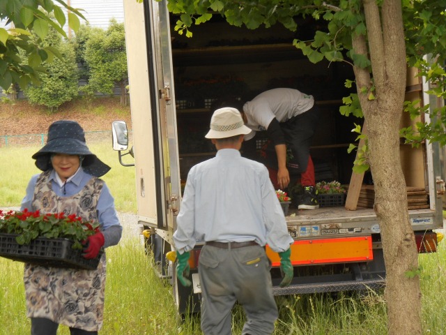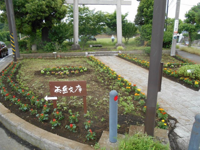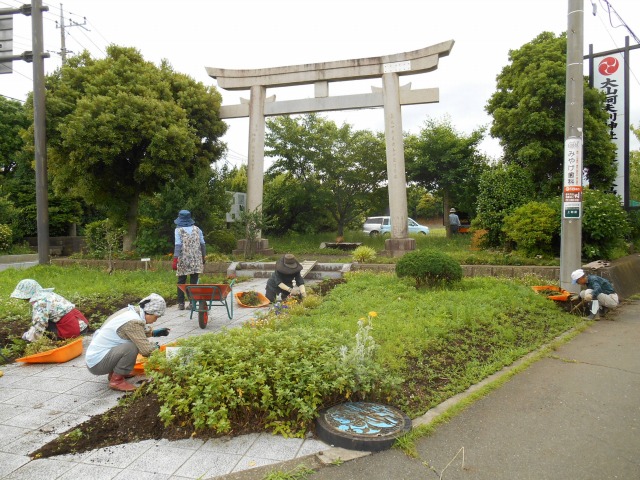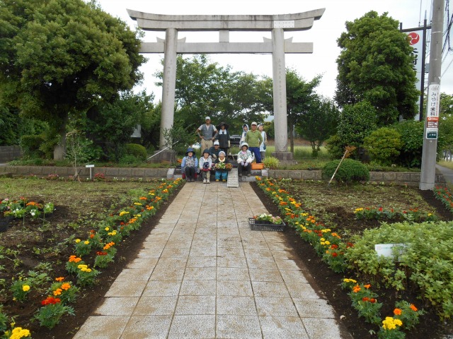 今年も伊勢原市のグリーンセンターから花の苗を頂き、二の鳥居の周りに植えこみました。