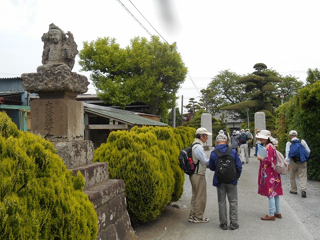 5月9日に行う「伊勢原とその周辺を歩く(青山道)1大山道合流の地、上粕屋」の下見をスタッフで行いました。伊勢原駅北口に9時集合し金山公園をスタート、下糟屋村(粕谷宿)から丸山城址、咳止め地蔵を経て雨岳文庫、太田道灌の墓、上粕屋神社、石倉橋(青山道・柏尾道と田村道の合流点)まで歩きました。