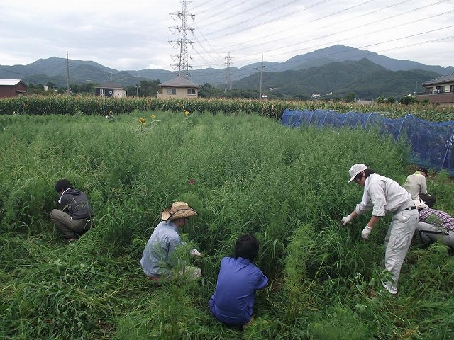 工学院大学の教職課程の授業で、西富岡のコスモス畑の除草をしま した。