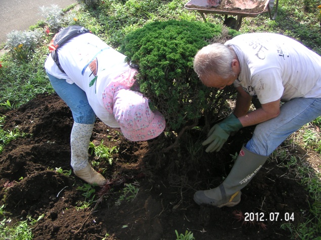 移転・植え付けの作業は雨岳文庫の有志が労力を提供しました。
