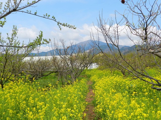 雨岳文庫の梅畑。菜の花と大山で春満開。