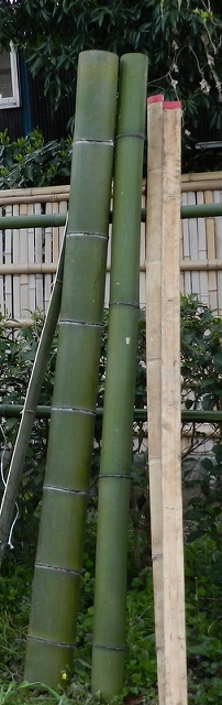 右側:真竹 (マダケ) 節の間が広い。