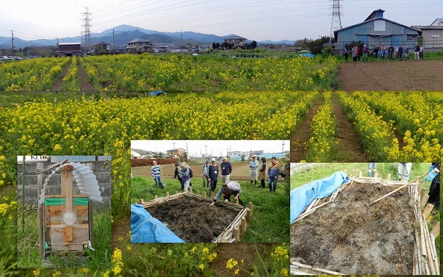 2週間前に作った堆肥が、ホワホワと湯気を出していました。