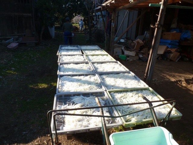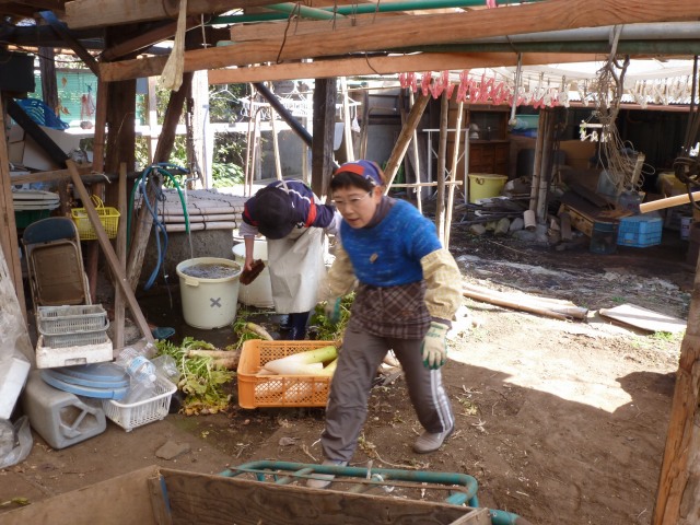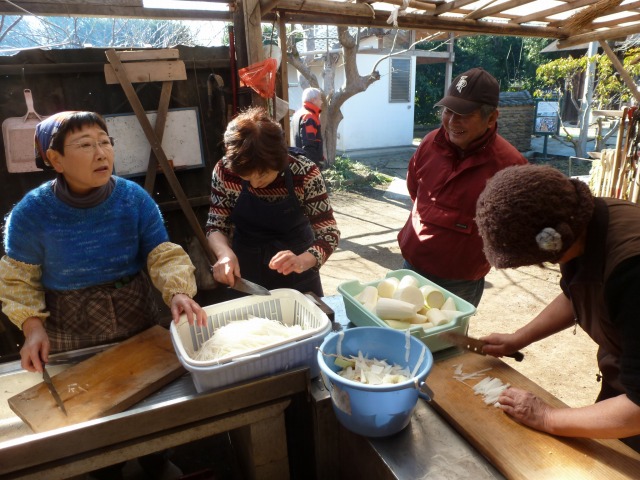 今日は切干ダイコン作り、梅林の散策路作り、資料館の整理などをしました。