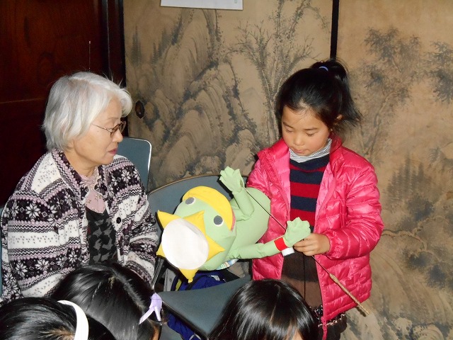 今日も好天に恵まれ、伊勢原の大山マラソンもありみんなで応援をしました。午前中は庭でフラダンスがあり、午後奥座敷で人形劇が、庭ではシニアクラブの”輪になって踊ろう”などで盛りだくさん・にぎやかな1日でした。