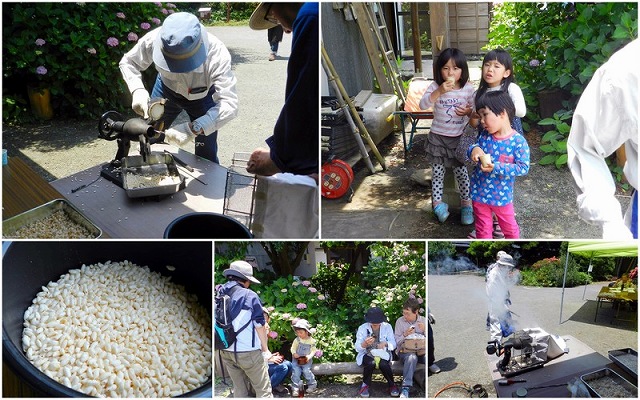 子ども達向けのサプライズとして、ポン菓子を作って食べてもらいました。