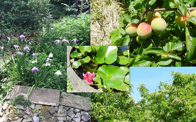 日曜日の雨岳文庫は、色づいた梅の実の他に、菖蒲、水連の花が咲き、栗の花もたわわに風になびいていました。