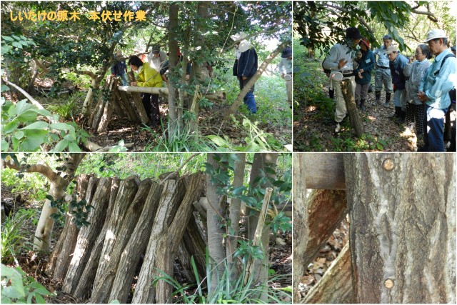 昼食後、椎茸の原木(3月にオプションプログラムとして竹垣作りを行った際に植菌したもの)が仮伏のままになっていたのを、本伏せしました。その後、車に分乗して西富岡の畑に移動。
