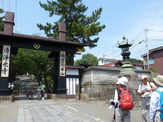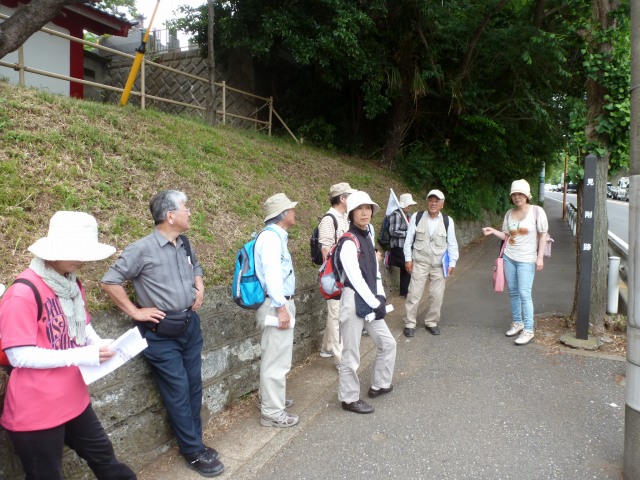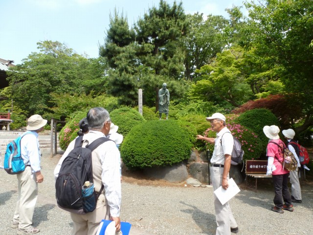 5月25日文化財ウォーク3;地代官山口作助の歩いた道(大山道;四ツ谷から藤沢へ)が行われた。参加者38名スタッフ14名が3班に分かれて辻堂駅から藤沢の遊行寺まで5.1Kmを、いせはら歴史解説アドバイザーの話を聞きながら歩きました。