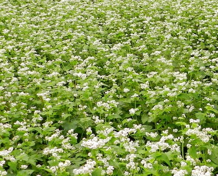 今満開のソバの花。
