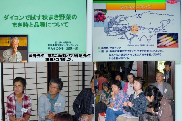 11:00-12:00 淡野一郎先生の講義「秋まき野菜のまき時と品種」