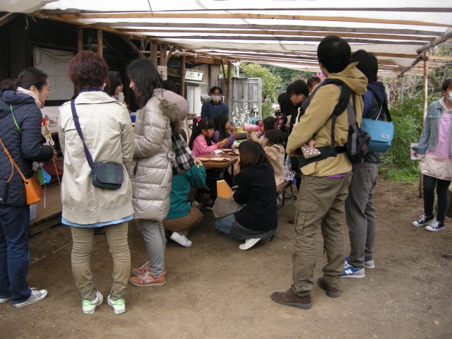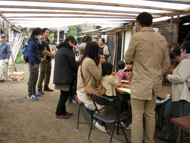 寒い日でしたがテントの下で、フェリーチェbambiniと東京家政学院大学の学生がコラボして、グリとグラのお話を読んでからグリとグラのレシピでカステラを焼きました。