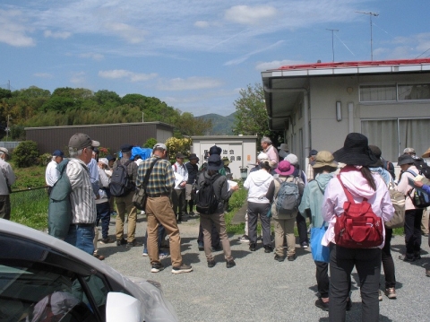 出発前に雨岳ガイドの会顧問諏訪間講師による講座を岡崎福祉館庭内で開きました。