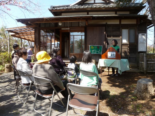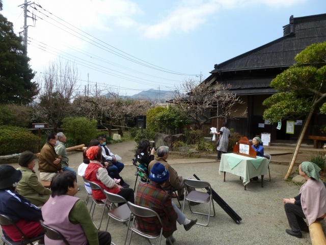 春いろフェスタで16日、17日「伊勢原の民話」の紙芝居がありました。  朗読者 伊勢原の読み聞かせ団体「おはなしばるーん」