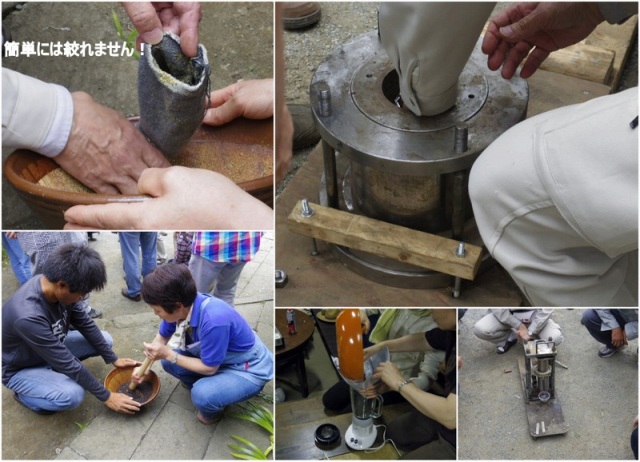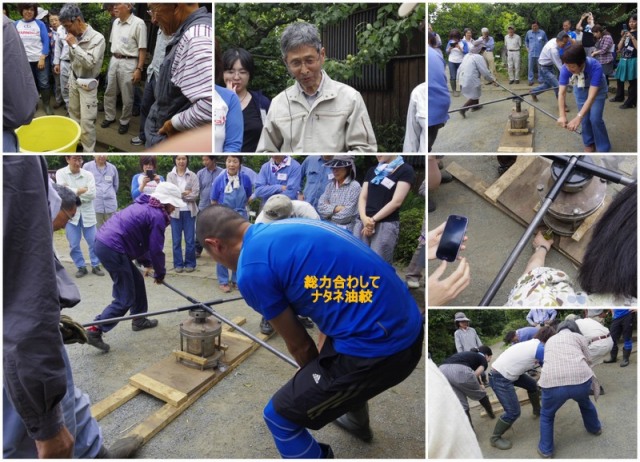 13:00 安原 義先生の指導の下、ナタネの油絞り