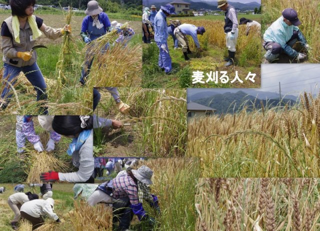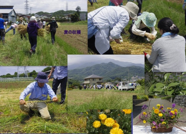 11:00 畑へ移動し、コムギの刈り取り