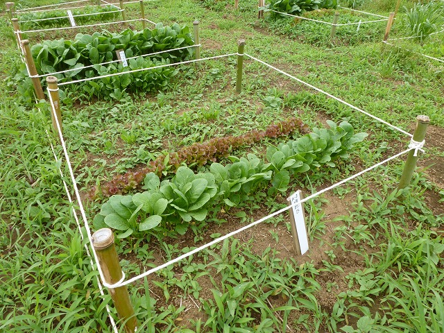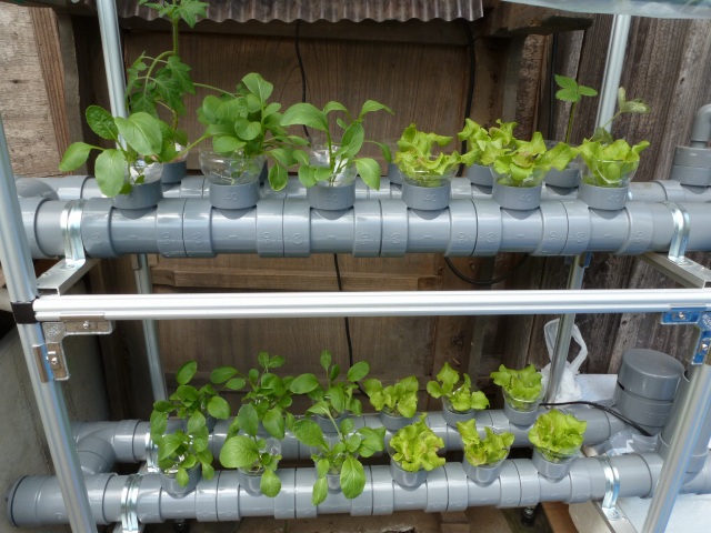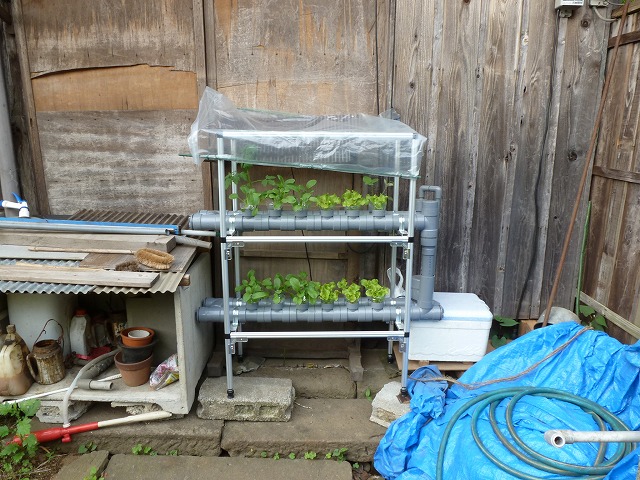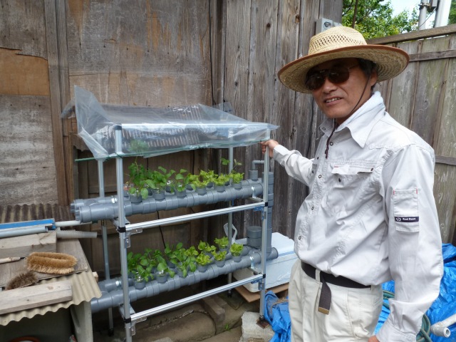 第一回目で、いろいろな施肥区で野菜を蒔いてみるというのがありまして、当会会員の阿部さんと云う方が手作りの栽培器を使った水耕栽培を同じ野菜で平行してやってみました。