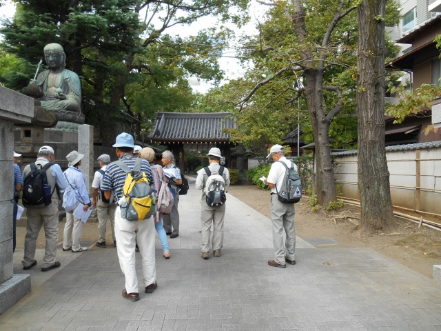9月27日の文化財ウォーク(地代官作助が歩いた道;大山道)7を10日後に控え、スタッフ13名で全行程を下見しました。今回は旧東海道の道幅が昔通りが残っている品川宿を端から端まで歩き、さらに47士の墓で有名な泉岳寺まで歩きます。