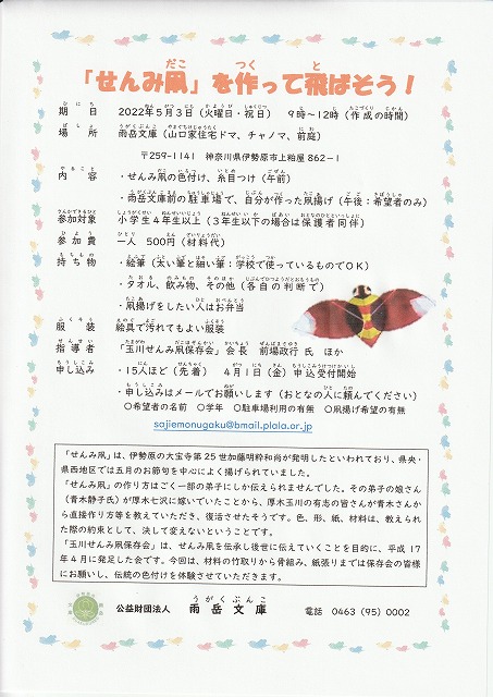 雨岳ガイドの会では4/16(土)に文化財ウォーク「開村400年の伊勢原」を行います。何かと謎の多いい伊勢楢の生い立ちのミステリーに私達と共に歩き触れてみませんか?3/24にウォークの下見を行いましたので一部ですが紹介します。また大宝寺の和尚さんが発明したと言われる「せんみ凧」を作って、「飛ばそう」というイベントが5/3(火・祝日)に山口家住宅でありますので、お孫さんにも伊勢原の歴史イベントに触れていただいたら如何でしょうか!