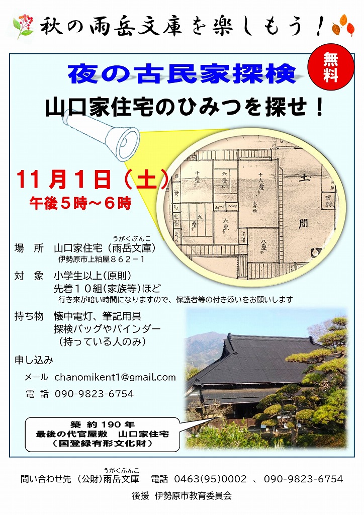 久しぶりの秋空の下、雨岳文庫山口家住宅では11月1日の「夜の古民家探検」に続き、