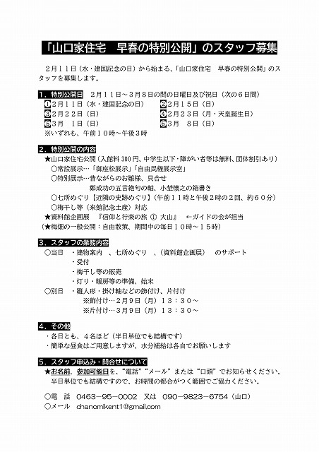 ★山口家住宅の公開【案内付き】(300円、中学生以下・障がい者・介助者無料、団