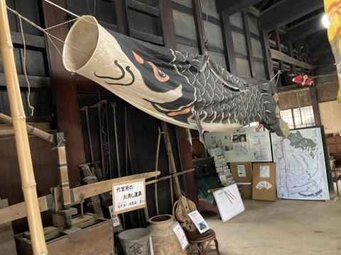 ▼一番大きな鯉のぼりは長さが5m以上、明治29年製、手書きです。