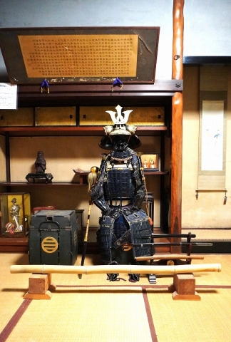 家紋が入った甲冑(鎧兜)が展示されています。山口家は間部家を支える名主でした。